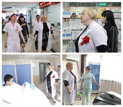 在受聘仪式结束后,伊琳娜·波波娃教授在王长福院长的陪同下,参观了医院“光疗中心”、“中医诊疗中心”、“新技术中心”三大诊疗中心。